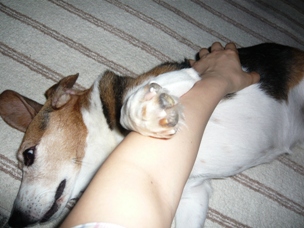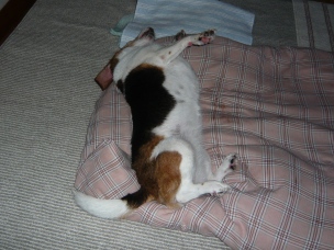 「リブちゃん、なんか窮屈そうな寝方やね、今日は」