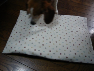 (定位置に敷くと、さっそく乗っかってリラックス)