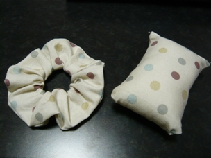 (飼い主用のシュシュとリブ用の鳴き笛入りおもちゃも作りました)