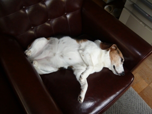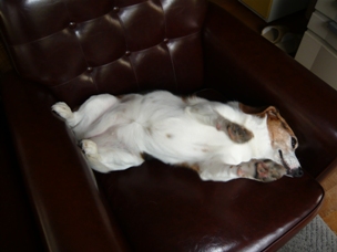 「リブちゃん、まただらしない寝方やな~。