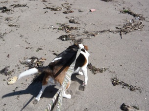 無理やり浜辺に連れてこられました。