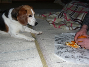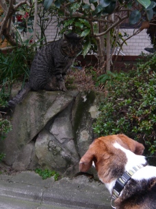 (晩ご飯を作り始めると やっぱり今日もスタンバイ) 「リブちゃん、サラダ待ってるの~?」 ん?