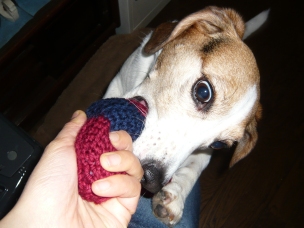 (アクリル毛糸のキシキシした歯ざわりは嫌いみたいですが