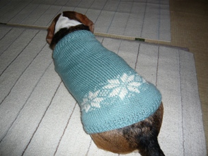 (今度は編み込みセーターと雪の玉みたいな白い細編みボールです。
