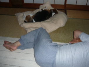 京都のお家に帰ってからも、晩ご飯を食べたらすぐにゴロンでした)