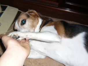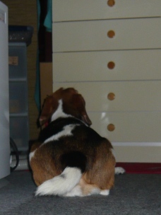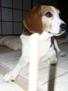 お父さんも登山でいないし、お母さんと娘さんも 一緒にお買い物に行っちゃっていなくなったので 久々にひとりぼっちでお留守番をしました。 お留守番前にミニジャーキー3本をいただきました。 そして、お留守番後… 「リブちゃん、お留守番ありがとう~」 またまたジャーキーですっ!! (もらいものなので、大奮発の3本) 「マテ!」 (もちろん…) 見ない、見ない。 見ないですよ。 「ヨシ!」 いただいてます。 モグモグ…