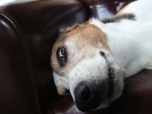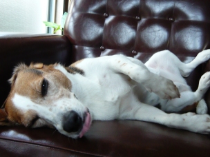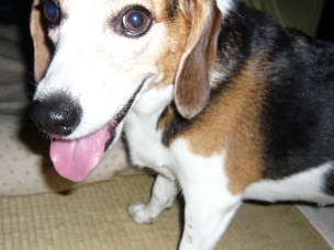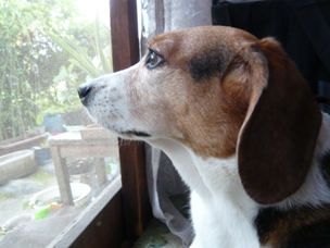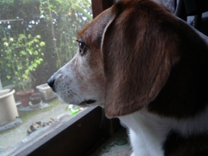 (お外を監視中) 「リブちゃん、横顔美犬やなぁ~。アダルトな色香やわ…」 (ふわっと風が吹きました) クンクン あ、もう秋のにおいがしますよ…。