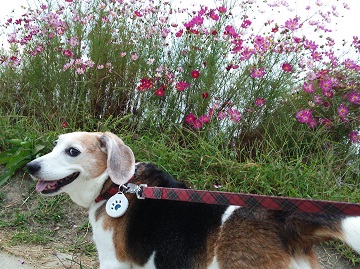 「リブちゃん、コスモス綺麗やねぇ」