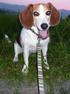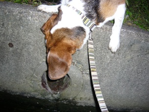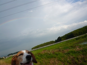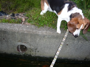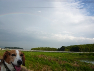 帰ろう!と引っ張ったのですが、頑固な狩猟犬は動かず…