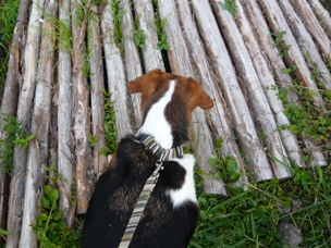 (イタチも負けじと丸太の隙間から、ギャンッ!ギャンッ!と鳴いて