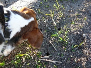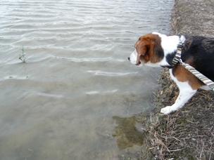 ジーッ… あれが気になります…。 「え…もしかして、リブちゃんあの草を見てる?」 気になってしかたないです。 「そのへっぴり腰でまさか…」 やっぱり、水怖いです…。 ジーッ…。 「で、その草をどうしたいんや?」 う~ん…。 う~ん…。 「今にも飛び込みそう…」 行けそうで行けないです…。 ジーッ…。 「なぜ、それほどまでにその草に執着を…」 (今日は30分以上はこの周辺を歩き、15分以上はこの草に見とれていました。)
