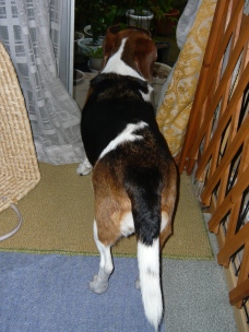 あ~あ… やっぱり雨降ってますね…。 お父さんは早朝からおでかけで 散歩に行けなかったし…。 は~あ… 退屈です…。