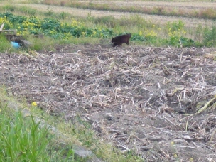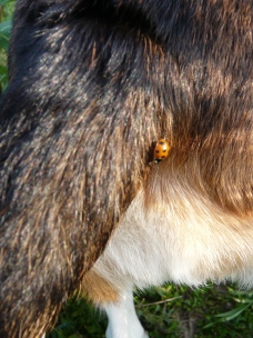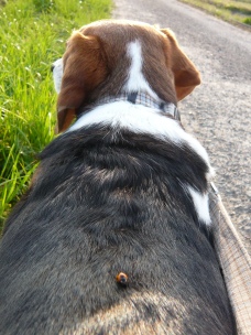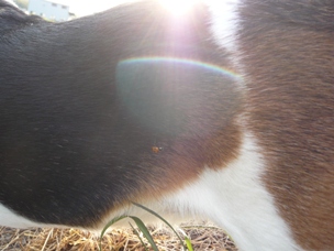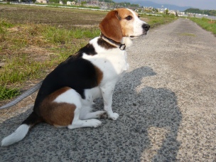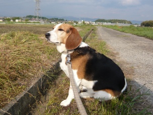 「リブちゃん、たそがれてるの?」 あ…。 向こうにお犬さんがいますよ。 「あ、ホンマやね…」 「今度はそっち向き?」 まぶしいです…。 「さ、そろそろ散歩の続きしよう!」 イヤですっ!! そっちには行かないですっ!! 「なんや、向こうに引き返したかっただけかいな」