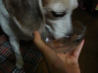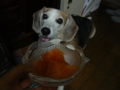 (人間用に使ったお皿にメロンのお汁が残っていたのですが