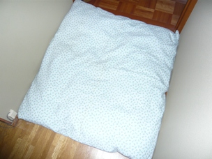 (以前手作りした2階のリブのベッドの夏用ホヌ柄のパイル地カバーが