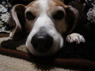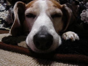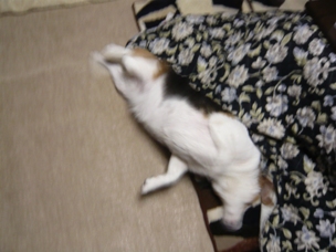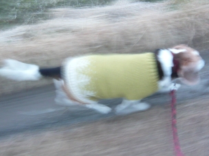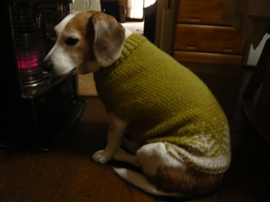 (さっそくストーブ前でくつろいでいるリブに着せてみました)