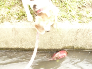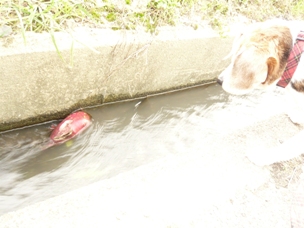 「リブちゃん、おいもさんが用水路に落ちてるよ!」