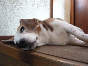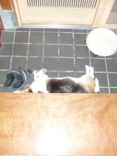 (今夏初の玄関の石の上でのごろ寝)