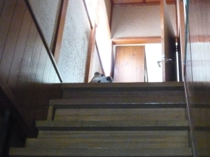 (リブが階段の上のところで留守番してました)