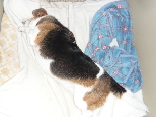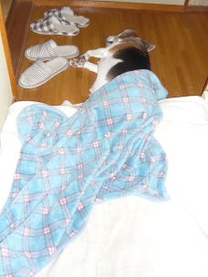 (肌寒いかと思って首のところまで毛布をかけてやりました)