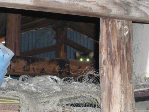 (物置小屋の屋根裏に潜んでいました)