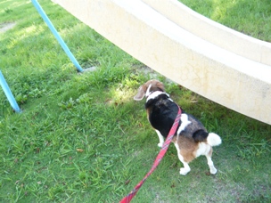 (すべり台に興味津々のリブでした)