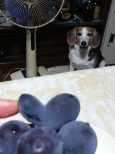 「わ~リブちゃん、この巨峰、一番下の粒がハート型に…」