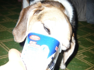 (久々にヨーグルトのカップをナメナメさせてあげました)