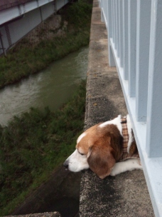 2日ぶりの散歩ですよ~ ワクワクしますよ~ 川の水の流れる音がいつもより大きいですよ~。 何があるかな? 橋の下がとっても気になる~ フンフン、フンフン