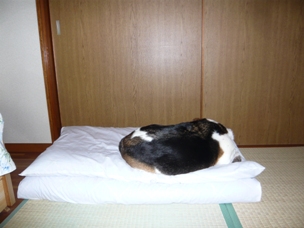 (そして片付けていない敷布団の上に乗っかって丸まります)
