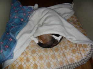 (寒いらしく、自らもぐりこんで寝るのですが…)